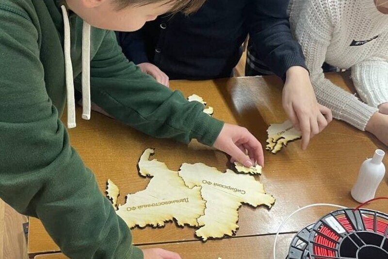 А ребята из хайтека в поселке Корзуново помогают учителям своей школы. С помощью программы CorelDRAW они создали карту субъектов РФ, которую можно собирать из паззлов и изучать таким образом географию и административное деление страны. Надеемся, карта сделает уроки истории и географии еще интереснее!